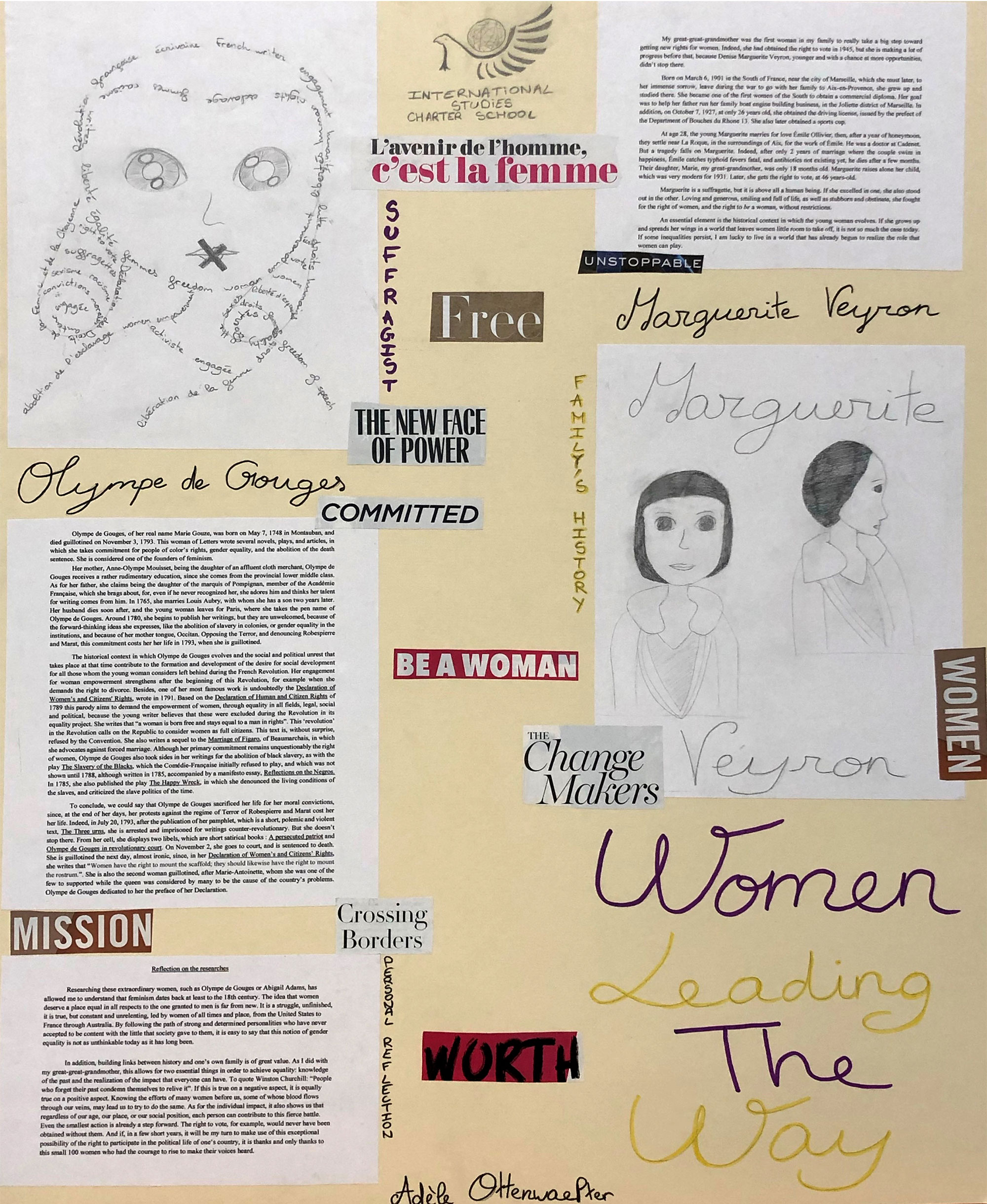 In addition, building connections between history and one’s own family is of great value. Learning about my great-great-grandmother allowed me to understand the importance of two essential things in our quest to achieve equality: knowledge of the past and the realization of the impact that everyone can have. To quote Winston Churchill: “People who forget their past condemn themselves to relive it.” If this is true of a negative aspect, it is equally true of a positive one. Knowing the efforts of many women before us, some of whose blood flows through our veins, may lead us to try to do the same. As for the individual impact, it also shows us that regardless of our age, our place, or our social position, each person can contribute to this fierce battle. Even the smallest action is already a step forward. The right to vote, for example, would never have been obtained without them. And if, in a few short years, it will be my turn to make use of this exceptional possibility of the right to participate in the political life of one’s country, it is thanks and only thanks, in part, to these 100 women who had the courage to rise to make their voices heard.