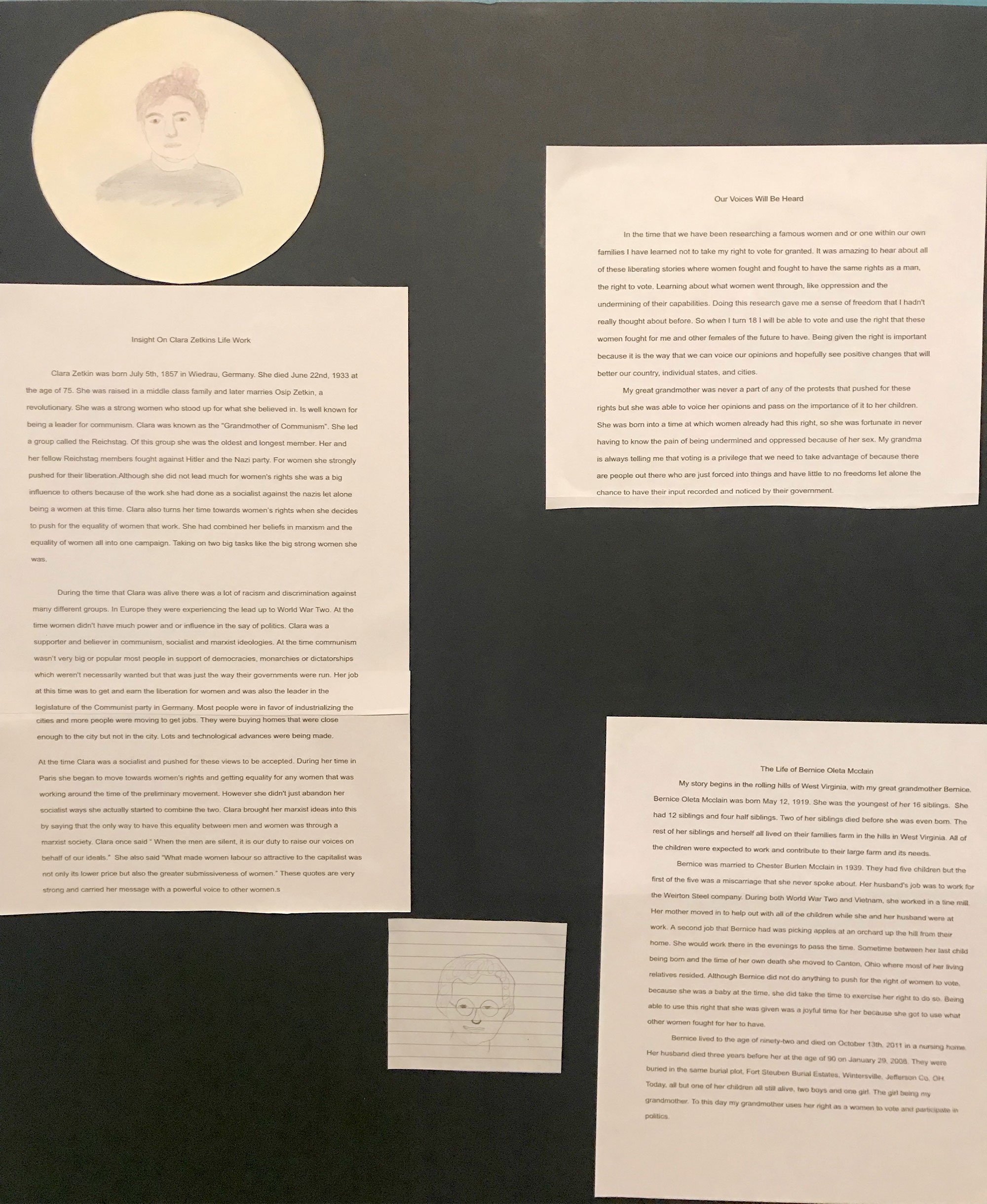 In the time that we have been researching a famous woman and one within our own families I have learned not to take my right to vote for granted. It was amazing to hear about all of these liberating stories where women fought and fought to have the same rights as a man, the right to vote. Learning about what women went through, like oppression and the undermining of their capabilities. Doing this research gave me a sense of freedom that I hadn't really thought about before. So when I turn 18 I will be able to vote and use the right that these women fought for me and other females of the future to have. Being given the right is important because it is the way that we can voice our opinions and hopefully see positive changes that will better our country, individual states, and cities.